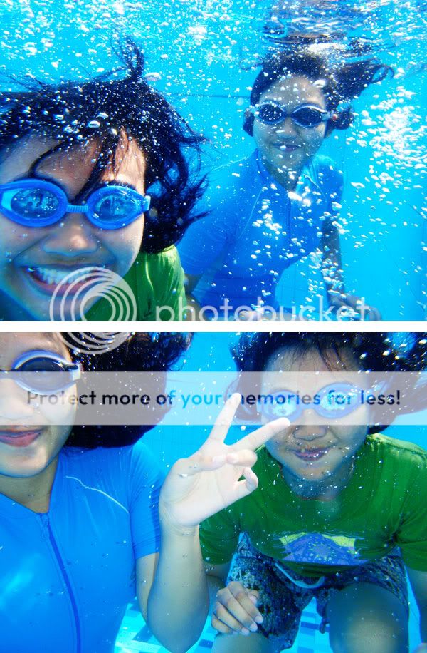 i just want to share this photos. aaa love their expression! exactly. underwater expression, oh it hard to open your eyes when you were underwater. but i love it! this photos taken May 1st and 2nd 2010. my friend and I had a trip to Puncak and we swam there :D oh i gotta do this again with them. what a really fun day hihi